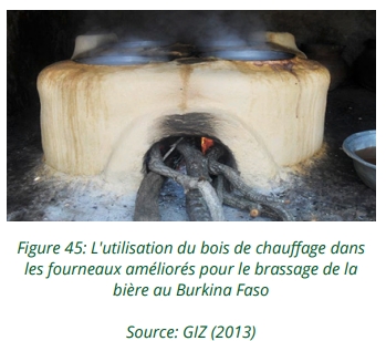 Au Burkina Faso, la biomasse n’est pas uniquement utilisée à des fins domestiques. Elle joue également un rôle clé dans plusieurs secteurs économiques. Le brassage de la bière locale (dolo), avec plus de 3 500 brasseries recensées à Ouagadougou et Bobo-Dioulasso, représente une activité économique importante au Burkina Faso. Cependant, la production de cette bière locale consomme des quantités massives de bois de chauffage, contribuant à la dégradation environnementale. Pour y remédier, le projet FAFASO (Foyers Améliorés au Burkina Faso) a introduit des foyers performants pour les brasseurs, comme le foyer à boue amélioré Foyer dolo Roumdé, capable de réduire la consommation de bois de 60 à 80 % par rapport aux foyers traditionnels. Il y a aussi le séchage de produits agroalimentaires, pour lequel, le projet BioStar illustre parfaitement l’utilisation productive et durable de la biomasse. Cette initiative a permis d’introduire des séchoirs bioénergétiques fonctionnant avec des coques de noix de cajou, un déchet agricole local, pour sécher des mangues. Une entreprise burkinabè, AgroBurkina, a déjà adopté cette technologie, réduisant ainsi sa consommation de bois tout en augmentant sa productivité. Enfin, dans le secteur industriel, bien que la consommation d’électricité soit plus marquée, certaines industries continuent de s’appuyer sur la biomasse pour des besoins thermiques, contribuant à la pression sur les ressources.