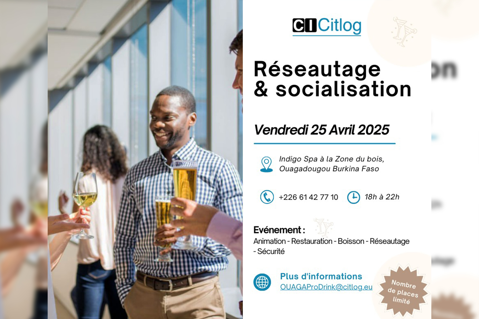 Les acteurs industriels sont invités à la première édition » La Pro Drink » ce vendredi 25 avril 2025 à INDIGO SPA à la Zone du bois Ouagadougou . Une initiative portée par CITLOG BURKINA, avec pour ambition de créer un cadre de networking spécialement conçu pour les professionnels du secteur industriel.